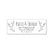 Timbres d'adresse de retour en caoutchouc personnalisées pour les invitations de mariage, enregistrer les dates, et autres papeterie et annonces. Le texte rustique personnalisé est jumelé à deux bois dessinés à la main pour un look de campagne mignon et amusant. Parfait également comme cadeau pour les mariées, les jeunes mariés et le ménage.