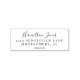Ce timbre d'encre d'adresse de retour est un moyen facile de marquer les enveloppes et les paquets avec votre adresse de retour et comporte un script de style calligraphie classique pour la ligne de nom avec une police serif traditionnelle qui montre clairement l'adresse pour les machines du système postal à lire.