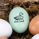 Timbre d'oeuf de mini-canard "Just Laid" Ce timbre d'oeuf de mini-canard de 1" x 1", un joli timbre pour les cartons d'oeufs de votre ferme.