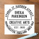 Artiste créatif ou Crafter Timbre en caoutchouc. Parfait pour un propriétaire de boutique Etsy ou un propriétaire de magasin d'artisanat. Nom de l'entreprise, type d'entreprise, plus deux lignes d'adresse dans un effet circulaire. Un tampon d'affaires pour toutes sortes d'articles de papeterie, enveloppes, paquets, etc. Timez votre adresse de retour facilement et élégamment.