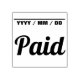 Cette simple estampille en caoutchouc comprend les messages "Payé" et une ligne où une date de paiement peut être écrite. On pourrait peut-être l'utiliser pour indiquer qu'une facture ou une facture a été entièrement payée.