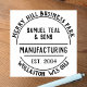 Timbre de la société manufacturière. Fabricants Timbre en caoutchouc. Nom de l'entreprise, type d'entreprise, plus deux lignes d'adresse dans un effet circulaire. Un tampon d'affaires pour toutes sortes d'articles de papeterie, enveloppes, paquets, etc. Timez votre adresse de retour facilement et élégamment.