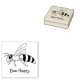 Un timbre avec un contour d'abeille de miel caricaturé. Le texte dit "Heureux" mais cela peut être changé pour un nom ou un autre message court.