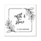 Des feuilles de verdure qui encadrent le tampon en caoutchouc dans le script et la police moderne.