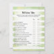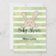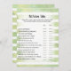 Profitez de jouer à ce jeu de baby shower Old Wives Tales sur douce, vert et blanc arrière - plan de rayures d'aquarelle. Mignons, bronzés, lapin lapin sur le dos avec des modèles créés pour vous.