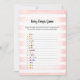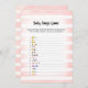 Profitez de jouer à ce jeu de baby shower Baby Emoji Pictures sur arrière - plan doux, rose et blanc de rayures d'aquarelle. Mignons, bronzés, lapin lapin sur le dos avec des modèles créés pour vous.