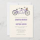 Une faire-part de mariage moderne avec un vélo tandem avec un panier et des fleurs. Veuillez vous renseigner sur les couleurs personnalisées !