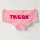 Le garçon rose de Twerk court-circuite des sous-vêtements pour des femmes. Typogrphy rose au néon. Les culottes des femmes faites sur commande avec la citation ou dire humoristique de danse. Les boyshorts des femmes roses personnalisées avec le texte fait sur commande, le nom, le monogramme, la lettre initiale, la citation drôle ou dire. Modèle frais de typographie. Culottes personnalisables pour l'anniversaire de femmes. En outre disponible en tant que lanières mignonnes/g - dossiers de ficelle et de boxeur. Faites votre propre lingerie drôle pour le jour de Valentines romantique, l'anniversaire, la partie nuptiale, le bâillon de partie de mariage, de célibataire ou de bachelorette, glissement personnalisé de shorts de garçon de dames avec votre propre texte fou. Accessoire d'habillement drôle pour l'amie, l'épouse, la jeune mariée à être, partner, le collègue, l'ami, la soeur, le sous-vêtement mignon du cousin etc. pour étonner l'associé, l'ami ou le mari. L'appui vertical d'amusement pour la partie de bachelorette, la lune de miel, la douche nuptiale, le week-end de filles, la nuit de dames, l'anniversaire, la poule font, le fiançailles etc. disponible dans des couleurs à la mode fraîches ; sarcelle d'hiver blanche noire rose rouge.