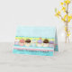 Les cupcakes sont cool et une façon très populaire de célébrer les occasions spéciales. Cette carte est conçue pour les communications professionnelles, il suffit de mettre le nom de votre entreprise sur la couverture et si vous le souhaitez, ajouter vos coordonnées à l'intérieur. Peint à la main, avec une bordure de cupcakes décorés par Audrey Jeanne Roberts, cela ajoute une touche de fantaisie colorée à cette invitation. Dans des tons de bleu, rose et vert citron, avec des cupcakes au chocolat et à la vanille, cela vous met l'eau à la bouche ! VOUS POURRIEZ AUSSI AIMER : CARTES D'INVITATION POUR MARIAGE :