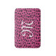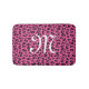 Tapis de bain chic à monogramme imprimé léopard rose néon. Décoration de salle de bain élégante. Design tendance avec des taches de peau d'animal. Impression tigre fantaisie. Typographie stylisée avec initiale de nom personnalisée. Idée cadeau de mariage ou d'anniversaire pour hommes et femmes. Jolie décoration intérieure chic pour salle de bain élégante. Disponible en petite, moyenne et grande taille.