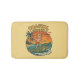This kitschy "Coastal Lifestyle" throwback beach art is pure Florida kid chaos! This surfer boy already knows how to handle an alligator and catch a wave, no surfboard needed. He's a Florida native for sure! The surf beach at sunset scene has bold orange, red and yellow colors, complete with palm trees blowing in the tropical breeze. The cheeky vintage inspired surfing graphic will make you chuckle. This sunshine-yellow bath mat will be a fun additional to your beachy bathroom decor. | Matching shower curtain available in store. This listing includes the bathmat only.