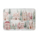 Une aquarelle rose et menthe Décor hivernal avec des maisons douillettes, des arbres de Noël et de la neige!