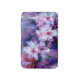 Les fleurs d'amande blanches sont en contraste saisissant avec un arrière - plan violet brumeux.