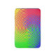 Ce tapis de bain coloré est muni d'un motif arc-en-ciel en spirale abstrait tourbillonnant autour d'une cible centrale dans les couleurs vert, bleu, jaune, orange et rouge.