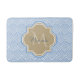 Un élégant tapis de bain motif à échelle de poisson bleu clair avec un badge en quatrefoil bronzé que vous pouvez personnaliser en ajoutant facilement votre monogramme et votre nom. Il fait partie de la collection de printemps du Petit Garçon Blue Fishcale Chaud Sand Monogram.