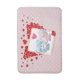 Tapis de bain avec une mignonne image de dessin animé d'une paire d'ours, un ours est rose pastel avec un petit arc et elle embrasse la joue d'un ours bleu qui semble ravi. Très mignon et kawaii. Beaucoup de coeurs rouges flottant tout autour. Arrière - plan rose muet avec un motif à pois blanc.