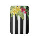 Elégante bande géométrique noire et blanche avec fleurs jaunes exotiques. Modèle de bain personnalisable