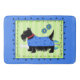 Montrez à votre chien l'amour de ce tapis. Ce tapis est muni d'un Scottie Terrier noir lunatique, vêtu d'un chandail bleu aux étoiles bleues et d'un collier rouge. Une boule verte citron et turquoise est derrière le Scottie et un gros os blanc de chien est à sa patte avant. L'arrière - plan est un motif à rayures tonales vert citron. Une bordure de ligne serpentine entoure l'image du chien pour faire un art de chien terrier écossais élégant, tendance et personnalisé. Trois fleurs bleues turquoises turquoise sont au-dessus du chien. L'art est sur un arrière - plan bleu. Ce chien mignon, câlin et tendance est l'art original de Phyllis Dobbs et fera fondre le coeur d'un amoureux des chiens. Cette Scottie fait partie d'une série de 6 Scotties et toutes sont entièrement personnalisables pour en faire la vôtre ! Coordonner avec les produits correspondants.