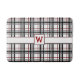 Un classique et un motif confortable de plaid obtient une torsion élégante en combinant une combinaison classique d'un arrière - plan blanc avec les barres noires et grises avec un accent de rouge riche. Customisez le monogramme avec l'initiale appropriée pour un contact personnalisé.