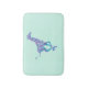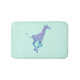 Une girafe de bébé galope à travers ce tapis de bain aux nuances de l'aqua, du bleu et du pourpre.