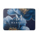 Ce tapis de bain à monogramme floral élégant et moderne, bleu marine et or, au nom de famille est l'accessoire de salle de bain idéal. Conçu par Thisisnotme©