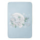 Un dragon blanc se trouve au milieu de roses blanches et de flocons de neige sur fond de bleu clair