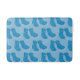 Blue bath mat with dotty wellington boots illustrated pattern.