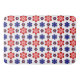 This bath mat features a beautiful colorful floral pattern of blue, purple and red stylized daisies against a white background; perfect for adding a touch of retro cuteness to your bathroom.