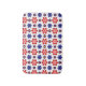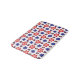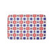 This bath mat features a beautiful colorful floral pattern of blue, purple and red stylized daisies against a white background; perfect for adding a touch of retro cuteness to your bathroom.