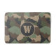 Décorez votre salle de bain avec style avec ce tapis de bain camouflage personnalisé. Ce motif de camo boisé branché comprend des couleurs en kaki, vert sauge, bronzé, brun et noir de charbon de bois avec votre initiale monogrammée en typographie de pochoir tan pour vous customiser. Le cadeau idéal pour les familles et les amis qui sont dans l'armée ou le camouflage d'amour. Conçu par l'artiste ©Susan Coffey.