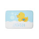 Quack, quack ! Le Tapis de Caoutchouc à Mat Bleu Coeur conçu par Enchantfancy Design Company présente un mignon canard jaune avec un coeur bleu sur son aile. Le canard en caoutchouc jaune flotte sur des bulles de bain. Personnalisez avec votre choix de nom ! Ce tapis de bain ajoutera une touche amusante à la décoration de la salle de bain d'un enfant.