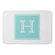 Ajoutez vos initiales ou tout autre texte pour customiser ce tapis de bain carré simple et moderne de monogramme dans la turquoise et le blanc. Ce tapis à la mode et chic est parfait pour ajouter un certain style à votre salle de bains.
