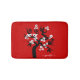 Tapis De Bain Cerisier noir, blanc inséparable, fleurs rouge