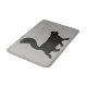 Amoureux des chats cool Bath Mat. Robe noire allongée avec longue queue moelleuse. Visitez le Doodle World de Jenn pour plus de motifs pour les amoureux des animaux de compagnie et de décoration de maison à thème animal.
