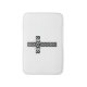 Un tapis de bain Croix celtique composé d'une croix noire et d'une bague blanche, tous deux en noeuds celtiques.