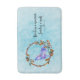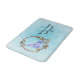 Un tapis de bain avec une illustration graphique composée d'une silhouette de loup d'aquarelle violette, en train de baiser sur la lune. À l'intérieur d'un dessin d'une couronne de bois, cristaux, plumes et perles. style boho cool. Citation typique : Coeur d'une âme guerrière d'un loup avec une ligne de séparation mignonne en bas avec un coeur boho au centre.