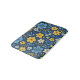 Ce tapis de bain joliment aménagé présente une fleur botanique méditerranéenne classique, avec un motif vibrant de fleurs jaunes, blanches et bleues moyennes et des feuilles sur un arrière - plan bleu foncé. Il est disponible sur une variété de produits de décoration moderne tels que des couvertures en toison, des lampes et de la literie.