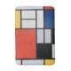 Composition avec grand plan rouge, jaune, noir, gris et bleu (1921) par Piet Mondrian est une composition artistique abstraite vintage qui est asymétrique avec un grand bloc dominant de couleur, le rouge, qui est équilibré par la distribution de petits blocs de jaune, gris bleuté et blanc. La composition comporte des lignes épaisses, noires, horizontales et verticales qui délimitent les contours des différents rectangles de couleur. À propos de l'artiste : Pieter Cornelis Mondriaan (Piet Mondrian) était un peintre hollandais dont le style signature est caractérisé par des couleurs primaires encadrées par d'épaisses lignes noires. Son oeuvre est connue pour son mélange innovant de cubisme et de modernisme, et pour son accent mis sur les éléments artistiques de base comme les lignes, les carrés et les couleurs primaires.