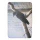 Corbeau assis sur une branche d'arbre. Des arbres tout autour avec la neige qui tombe.