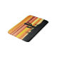 Illustration de coucher de soleil géométrique dans le désert Abstraite avec bandes diagonales jaunes, orange et rouges et décoration de cactus. Ajoutez votre nom/monogramme ou supprimez le texte.