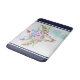 Une natte avec un arrière - plan turquoise et pastel. Un crâne animal chic boho avec un bouquet floral sur la tête et des petits papillons qui fleurissent. Une jolie bordure décorative aux petites teardrop en bleu clair.