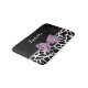 Un mignon tapis noir et blanc imprimé de girafe avec un ruban violet lavande ceinturé attaché dans un arc féminin. Personnalisez ce joli design poster de animal en ajoutant votre nom. Image imprimée plate, pas l'arc réel.