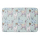 Tapis de bain avec un motif mignon avec lamas géantes. L'un est allongé, l'autre tient une fleur dans la bouche, et l'autre vous regarde de manière suspecte. Ces animaux ont beaucoup de charme. Placez-vous sur un arrière - plan à pois vert.
