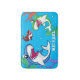 Ce joli dessin animé dessiné sur le requin est idéal pour les amoureux des requins dans votre vie. Apportez ces requins bleus, rouges et verts pendant le nettoyage et ils flottent dans l'océan. Le nom du texte blanc et bleu est personnalisable !