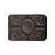 Ce tapis de bain renversant est décoré d'une image qui est si réaliste, il regarde presque tridimensionnel. C'est un beau bois découpant aux nuances du brun, un or, un acajou et un noir artistiques et rustiques. Une image circulaire abstraite centrale de fleur a des pétales rayonner à un cercle découpé qui est entouré par quatre sections. Chaque section a les découpages abstraits de feuille.