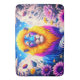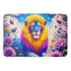 Ce tapis de bain a un design de lion dessus.