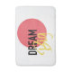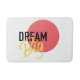 Design graphique moderne, audacieux et dynamique d'un dicton "Dream Big" avec forme circulaire en noir, jaune et rouge. Typographie urbaine, écrite à la main, style trait brosse.