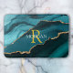 Personnalisez avec votre Monogramme et Nom en Or et en Blanc Texte sur un arrière - plan Agate Noir et Turquoise. Ce simple Design Classique fait un grand cadeau. Version 2.