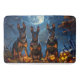 Libérez l'esprit effrayant avec ce design effrayant d'Halloween mettant en vedette une meute de chiens sous un ciel sombre éclairé par la lune, entourés de chauves-souris volantes et de citrouilles lumineuses. Parfait pour ceux qui aiment une touche de plaisir effrayant avec leurs amis à fourrure !