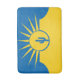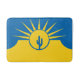 Tapis de bain avec drapeau de la ville Mesa, Arizona; drapeau jaune et bleu avec illustrations stylisées du désert, cactus et soleil levant